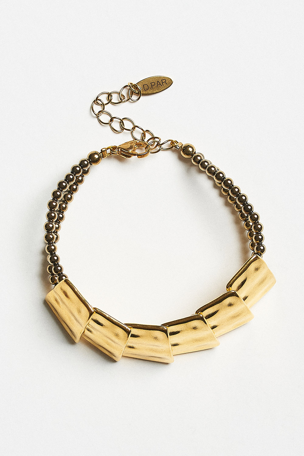 Βραχιόλι χάντρα αιματιτης και μεταλλικά επίχρυσα στοιχεία 24Κ
