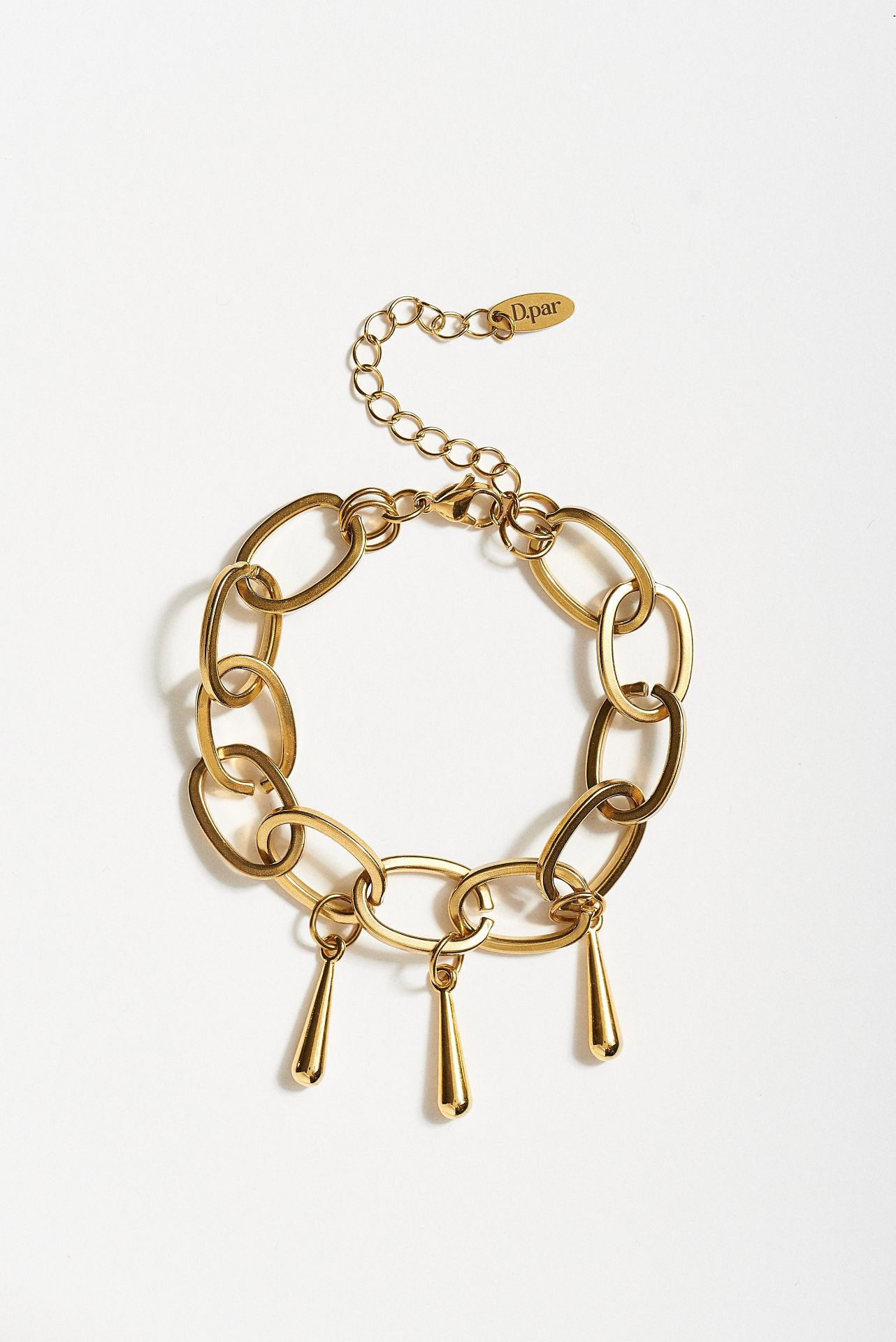Βραχιόλι ατσάλινη αλυσίδα και επιχρυσα στοιχεία 24Κ