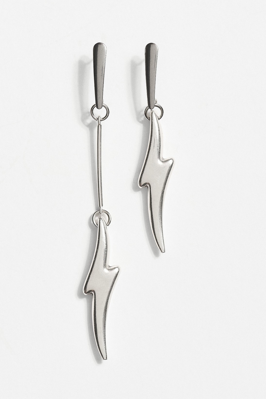 Σκουλαρίκια με ατσάλινο κούμπωμα και επαργυρωμένα στοιχεία 999°, μήκος 6,5 και 10 εκατοστά και υποαλλεργικό κούμπωμα