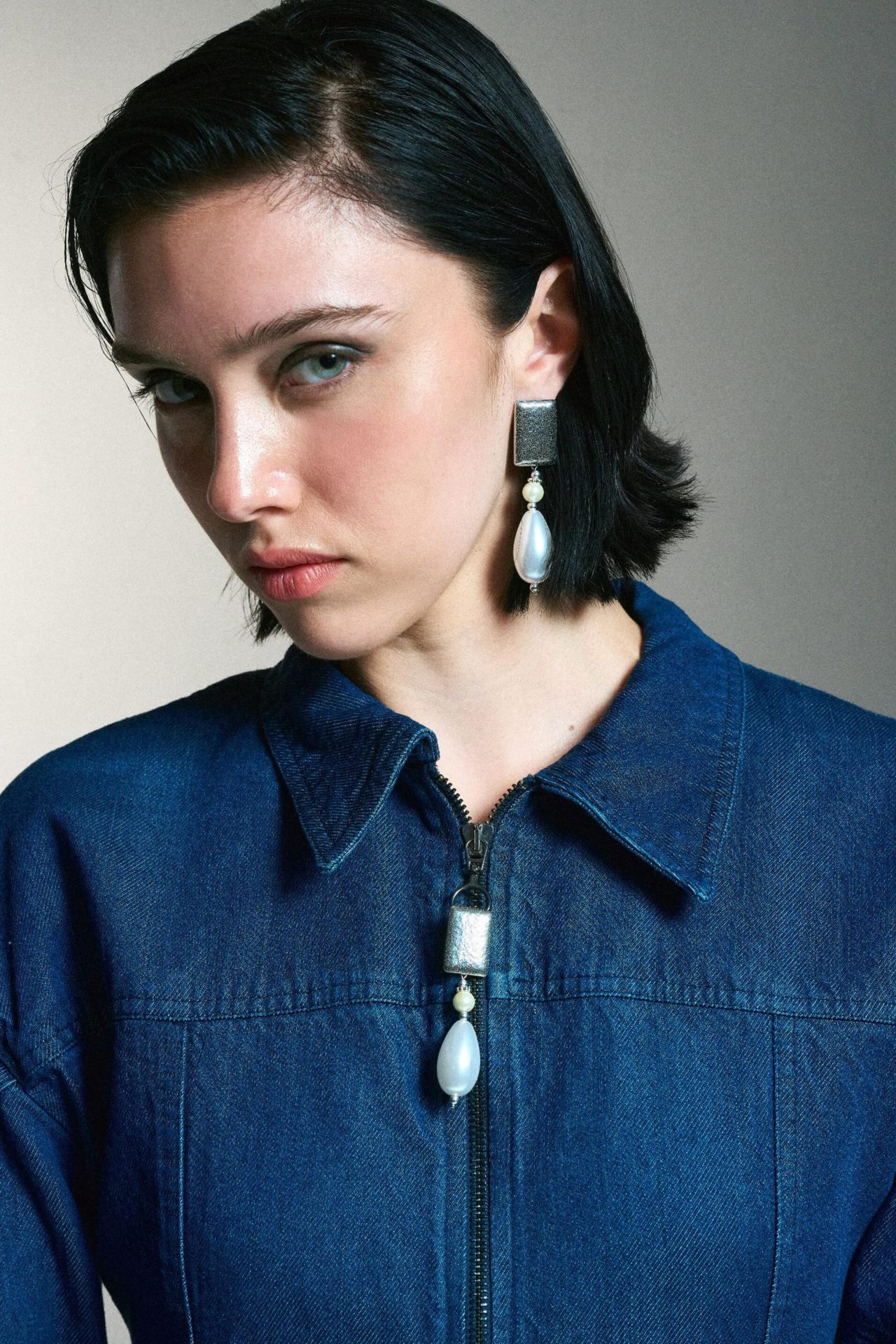 Σκουλαρίκια με πέρλα και ατσάλινο κούμπωμα, μήκος 7 εκατοστά και υποαλλεργικό κούμπωμα