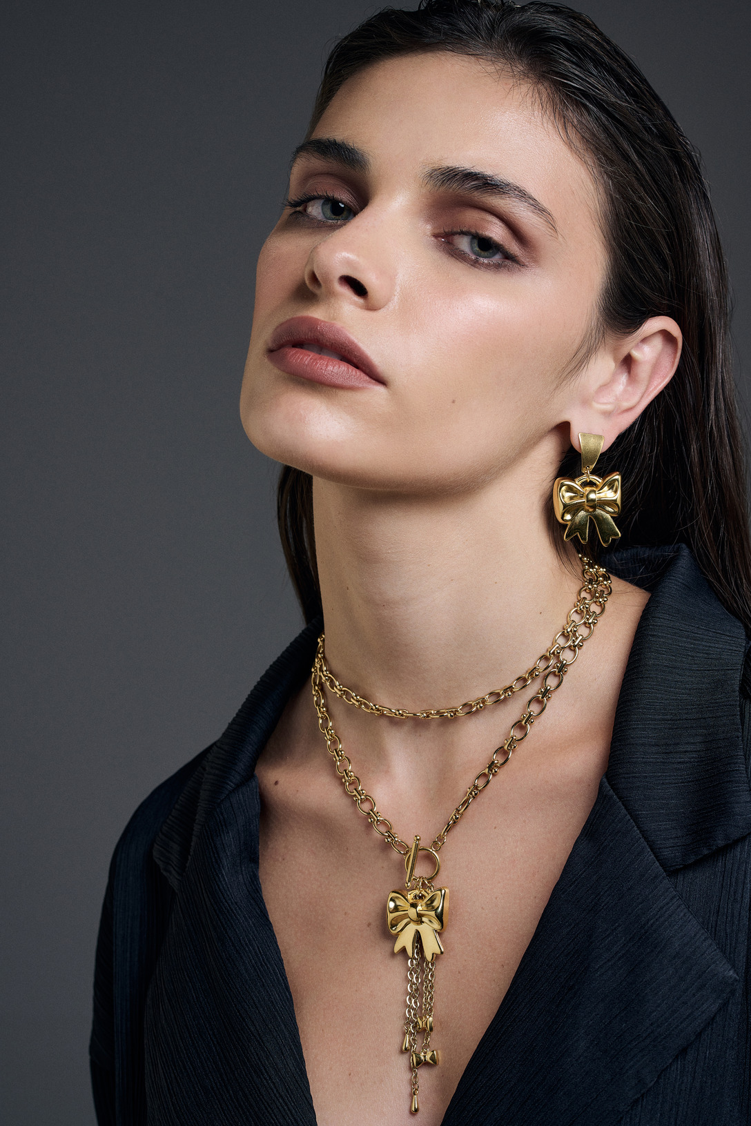 Σκουλαρίκια με ατσάλινο υποαλλεργικό κούμπωμα και μεταλλικό επίχρυσο στοιχείο 24Κ