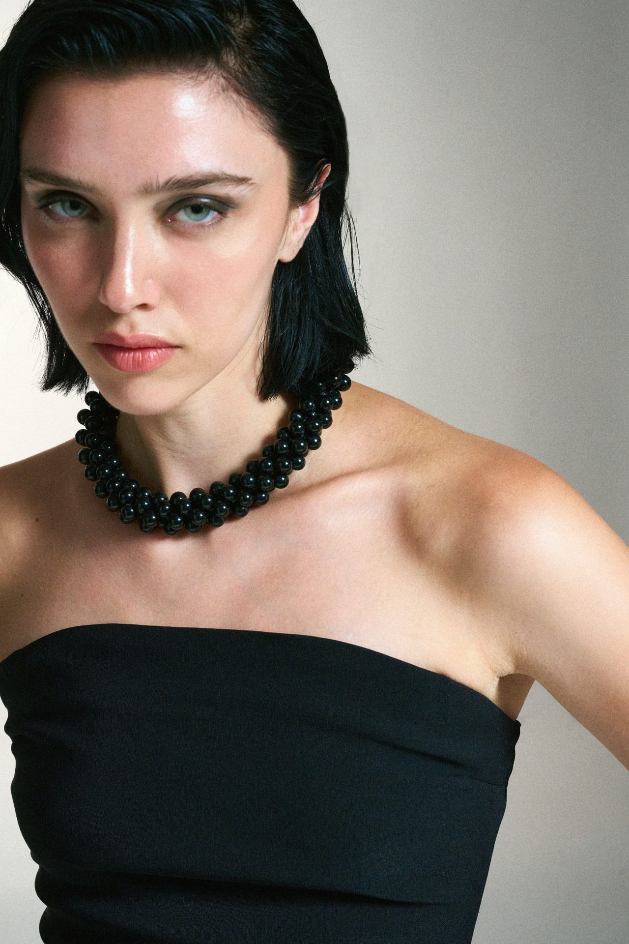 Κολιέ ακρυλικές χάντρες με επίχρυσα στοιχεία 24Κ, μήκος 40 εκατοστά