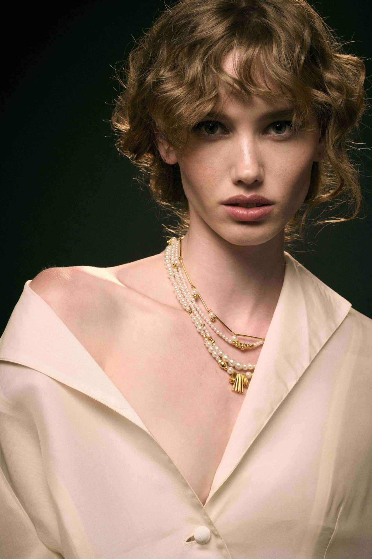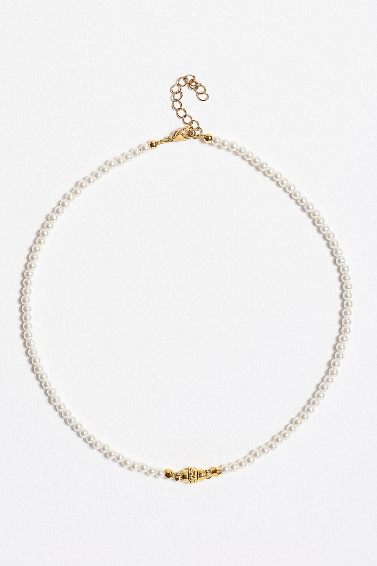 Κοντό κολιέ με πέρλα και επιχρυσωμένα στοιχεία 24κ.