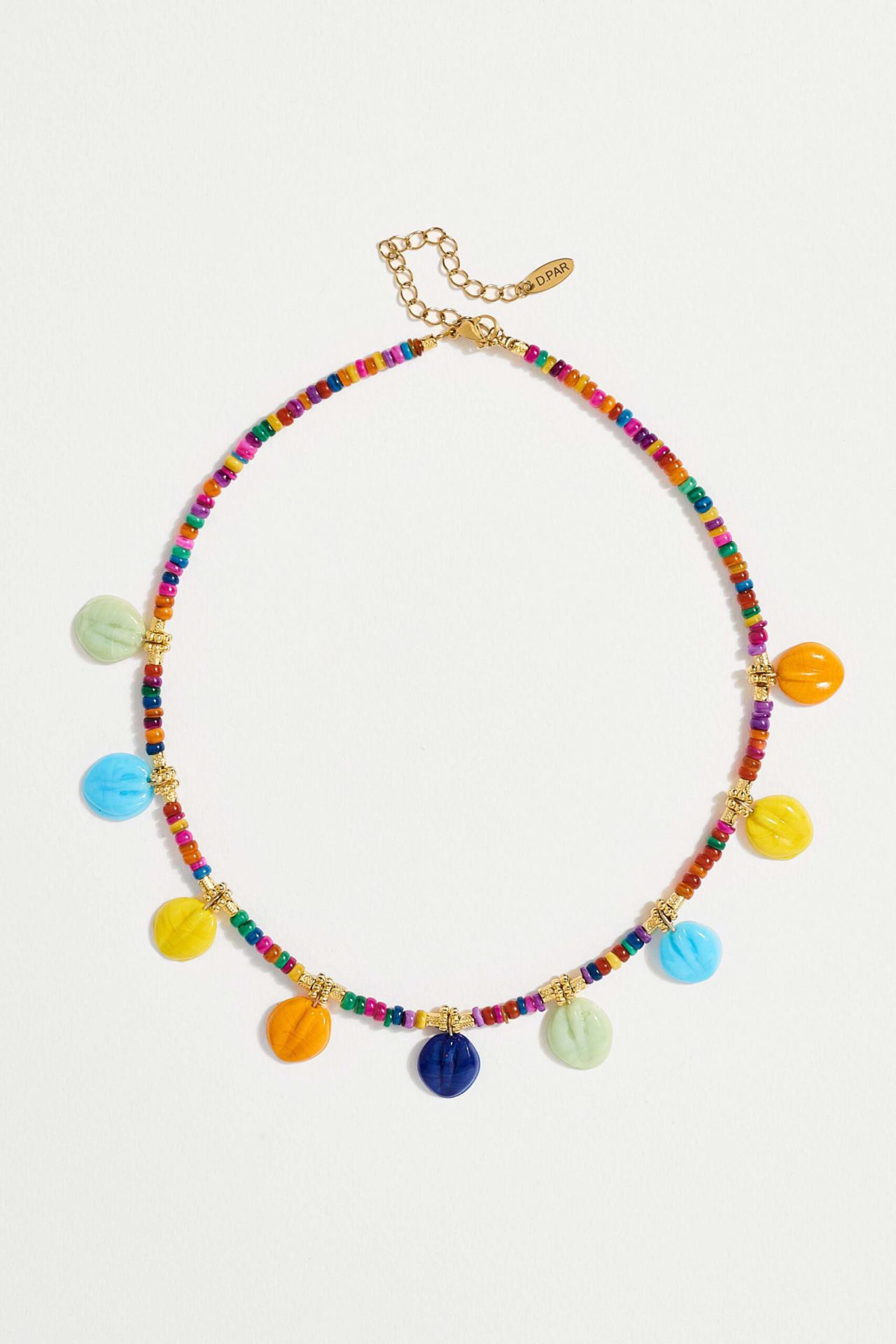 CHROMA κολιέ με χάντρα φίλντισι multi και γυάλινα στοιχειά.