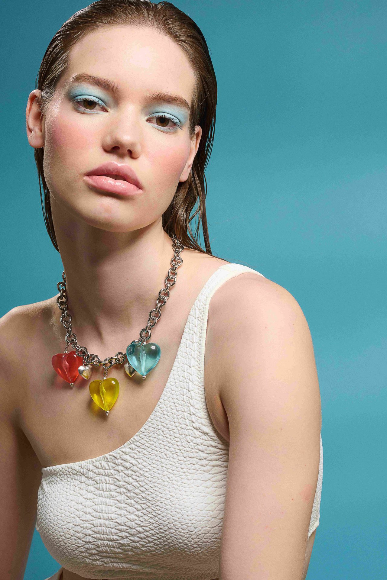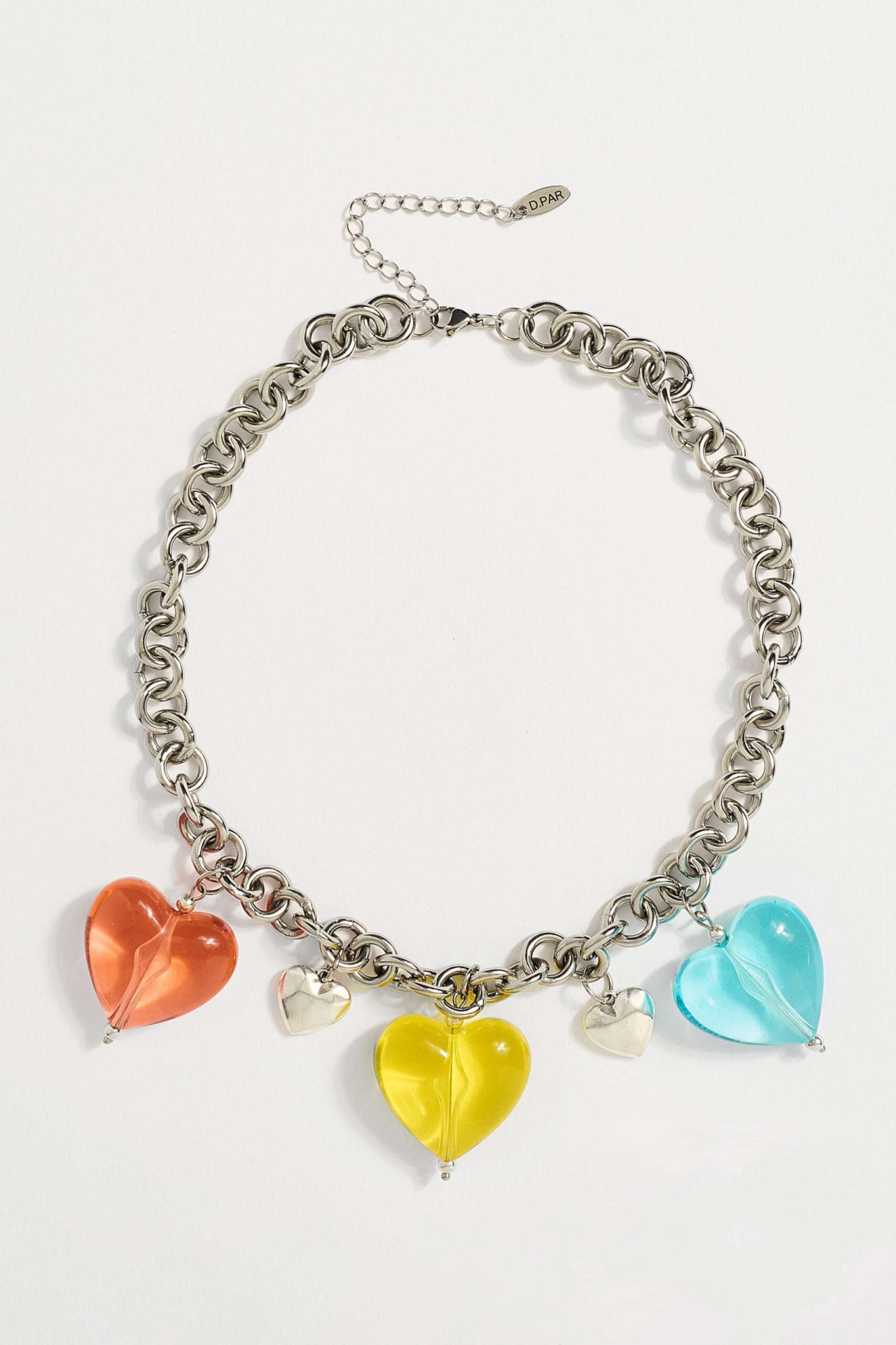 Κολίε με ατσάλινη αλυσίδα και ακρυλική διάφανη καρδιά.