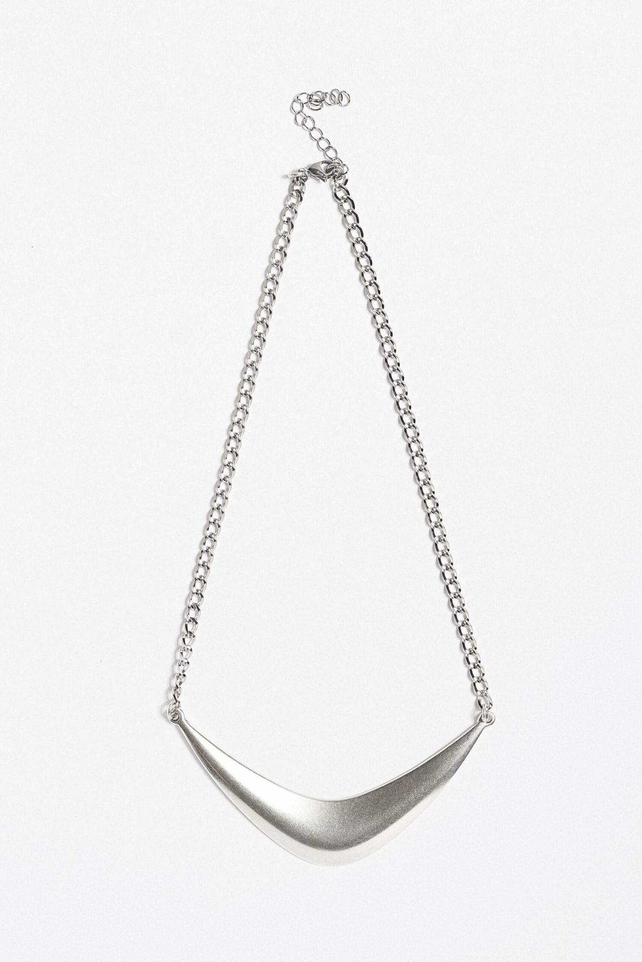 Κοντό κολιέ με ατσάλινη αλυσίδα και -V shape επάργυρο αντικέ στοιχείο.