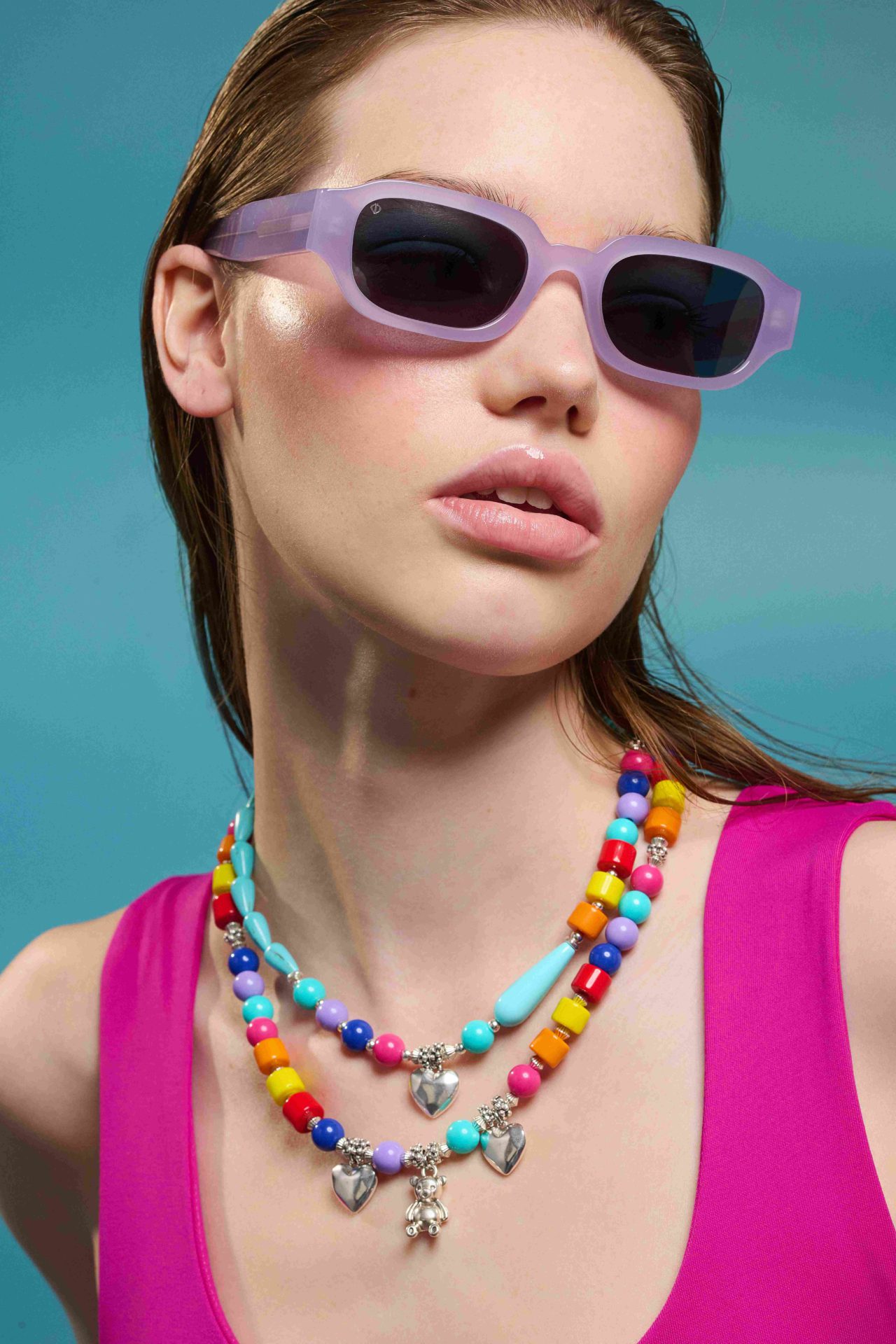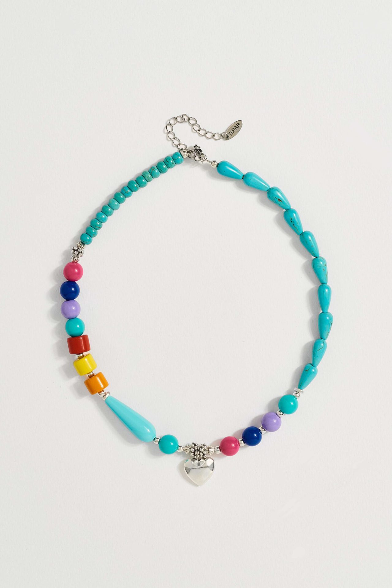 CORAL κολιέ με χρωματιστές ακρυλικές χάντρες, γαλάζιο χαολίτη και επάργυρο στοιχείο καρδιά.