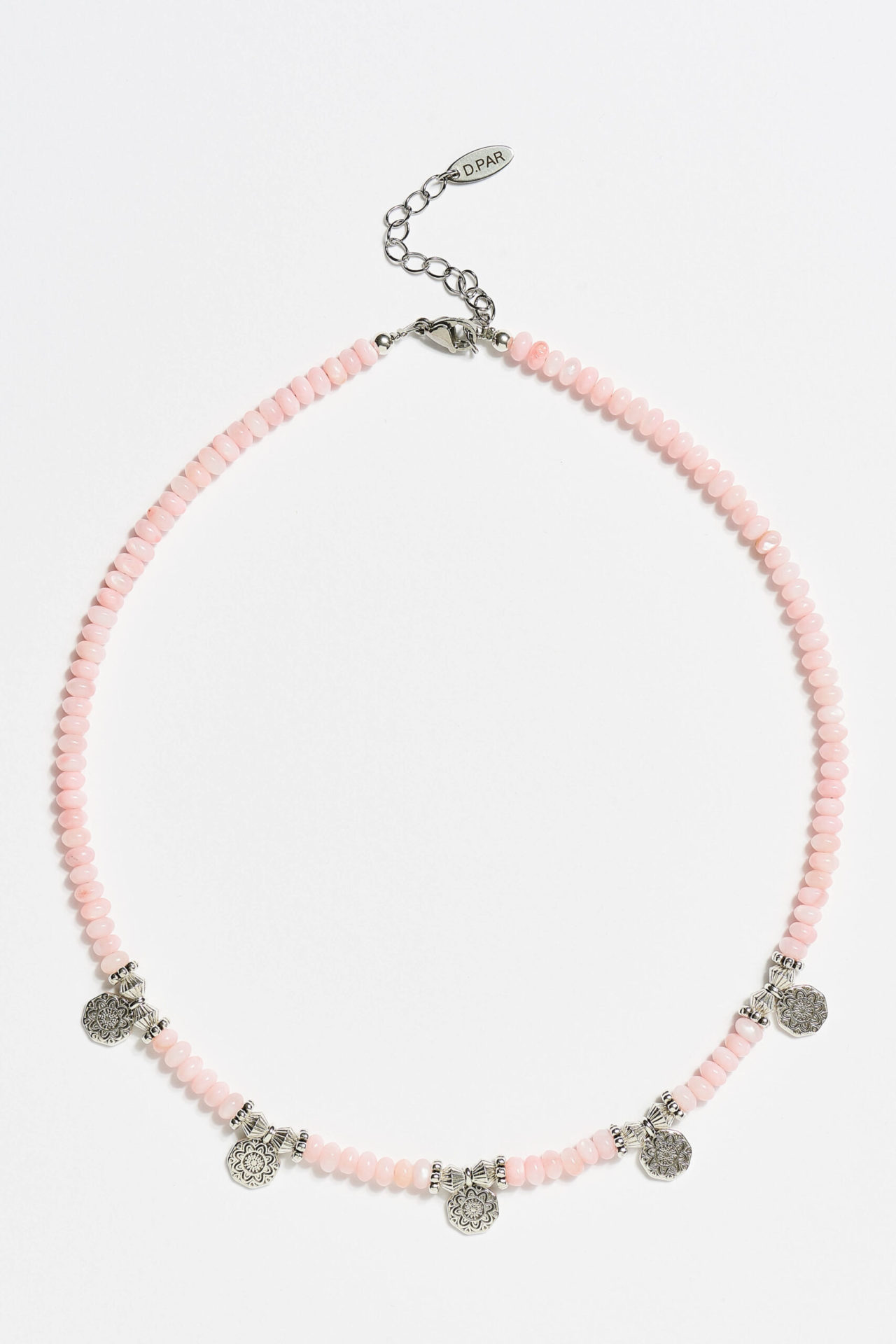 Κολιέ ροδέλα ροζ φίλτισι με επάργυρα στοιχεία και ατσάλινο κούμπωμα