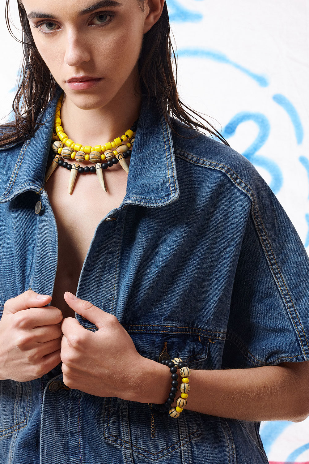 Dahlia κοντό κολιέ με ματ χάντρες kαι στοιχείο κοκάλινα δόντια.