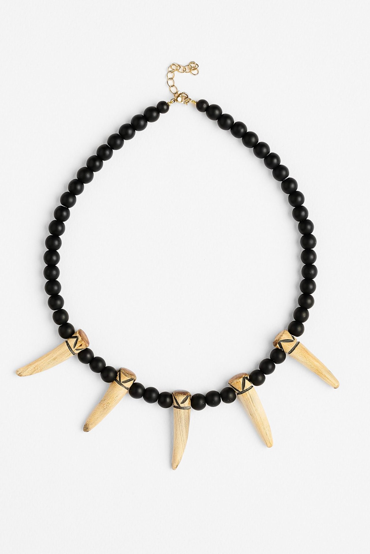 Κολιέ με ματ χάντρες με στοιχείο κοκάλινα δόντια.