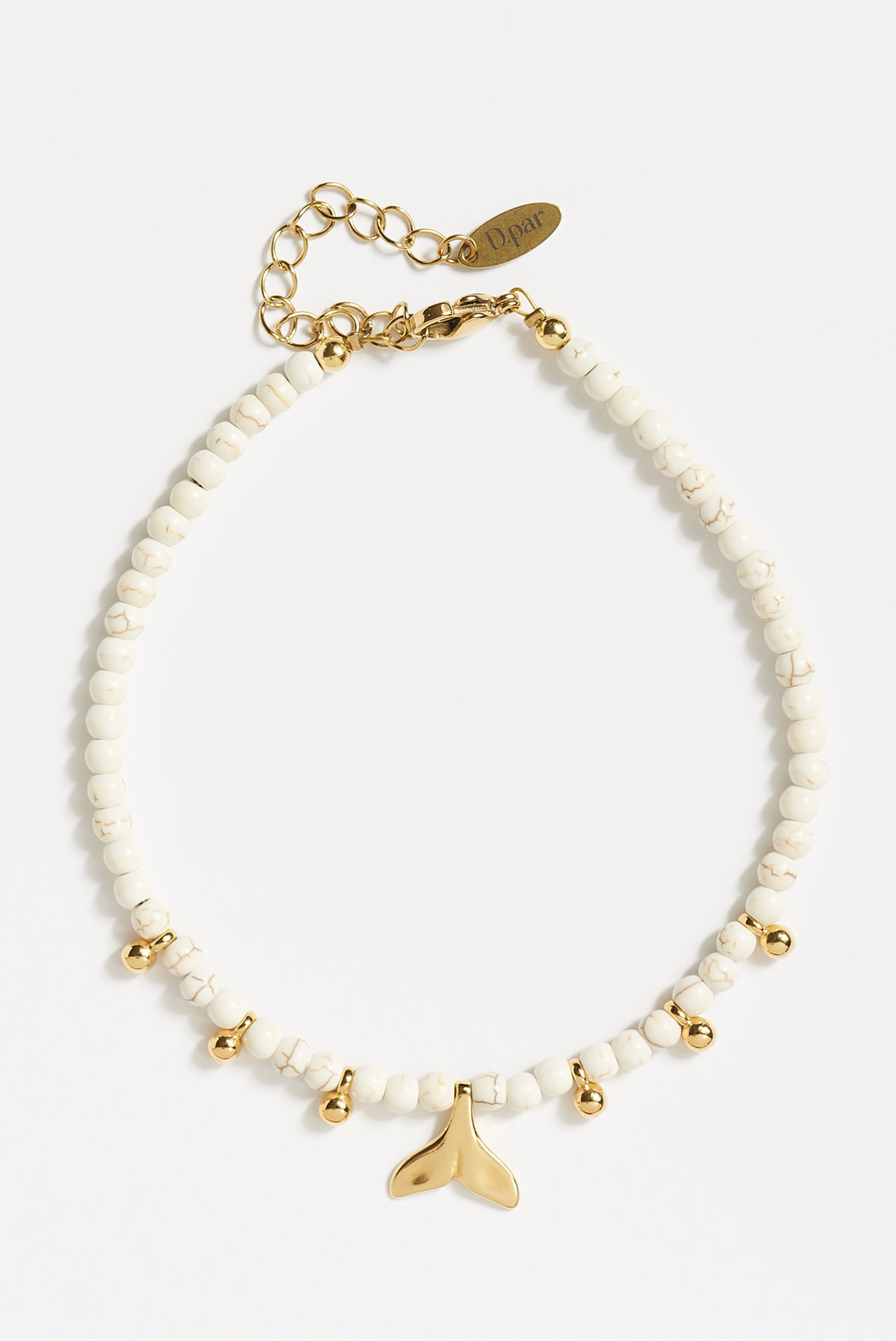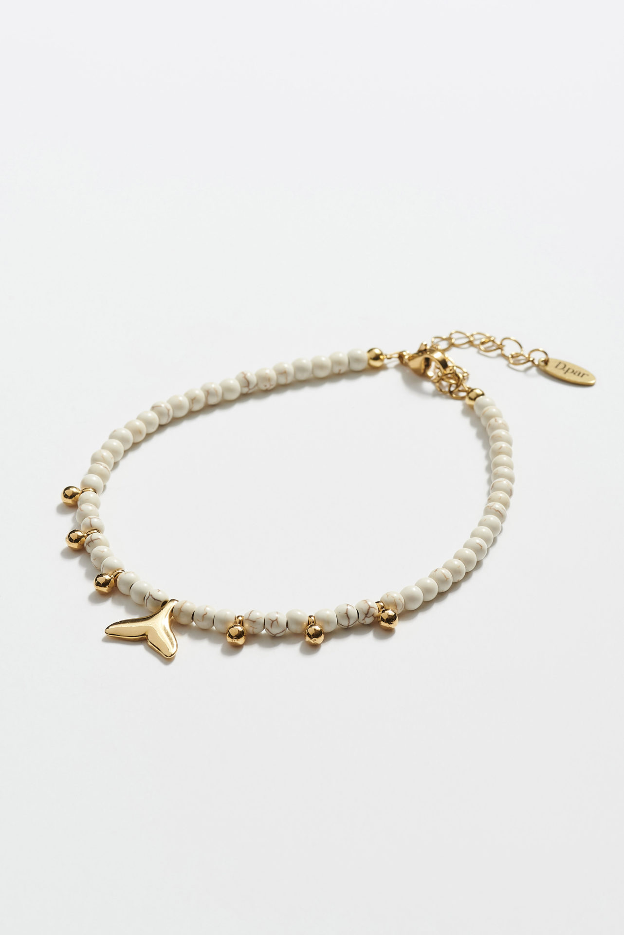 Bραχιόλι ποδιού με χάντρα χαολίτη και επίχρυσα στοιχεία 24Κ, ατσάλινο κούμπωμα