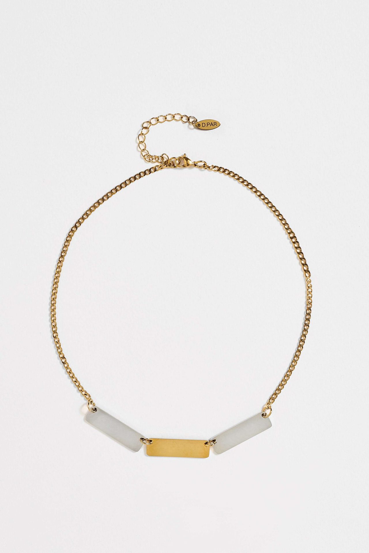 Κολιέ με ατσάλινη χρυσή αλυσίδα και ατσάλινα στοιχεία.