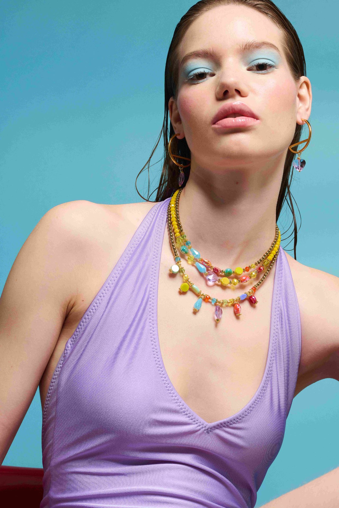 FIBULAE κολιέ με χρυσό αιματίτη και χρωματιστά κρύσταλλα.