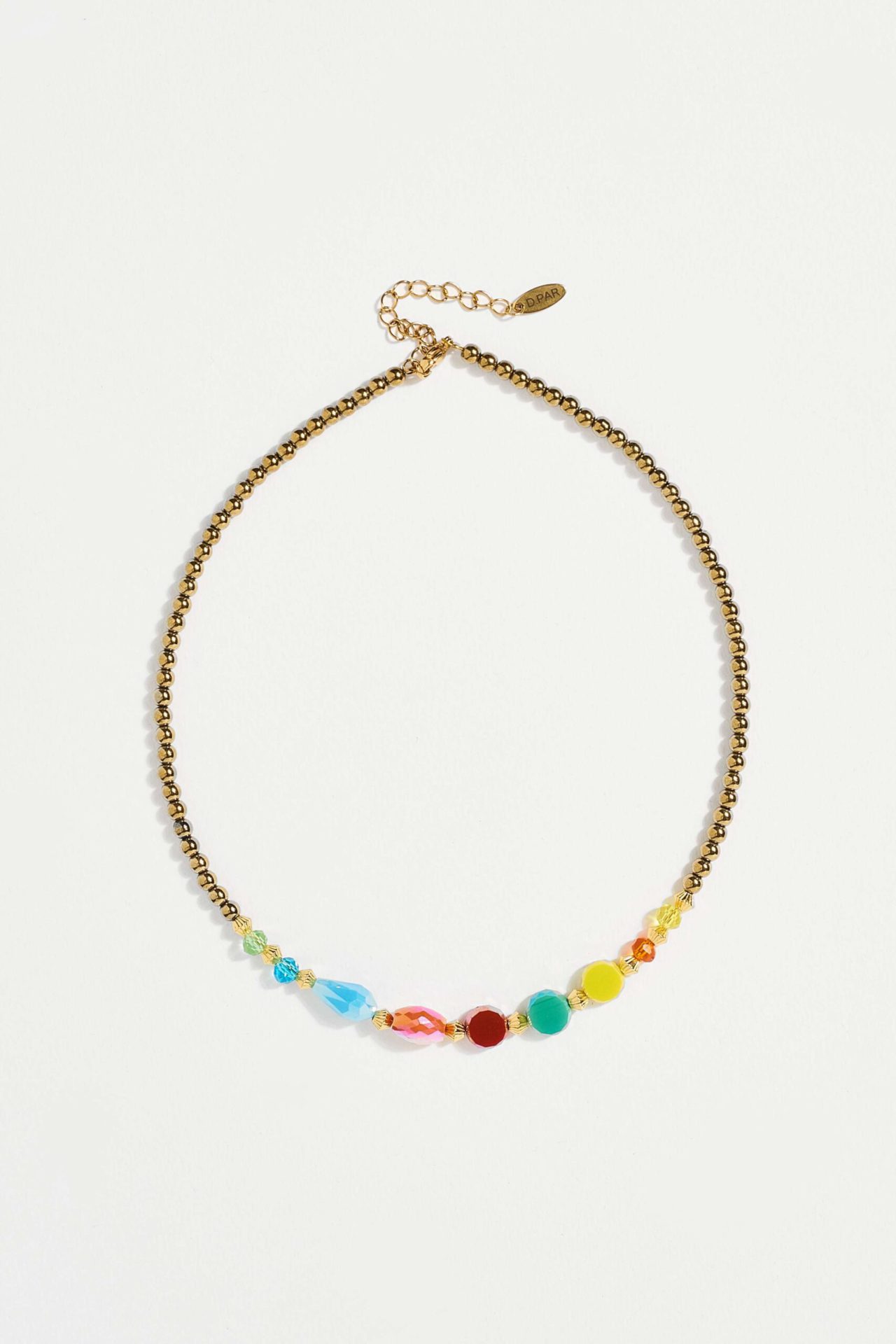 Κολιέ με χρυσό αιματίτη και χρωματιστά κρύσταλλα.