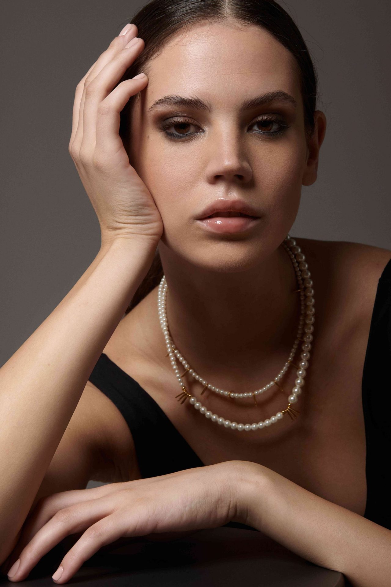 Κολιέ με πέρλα και χρυσά στοιχεία.