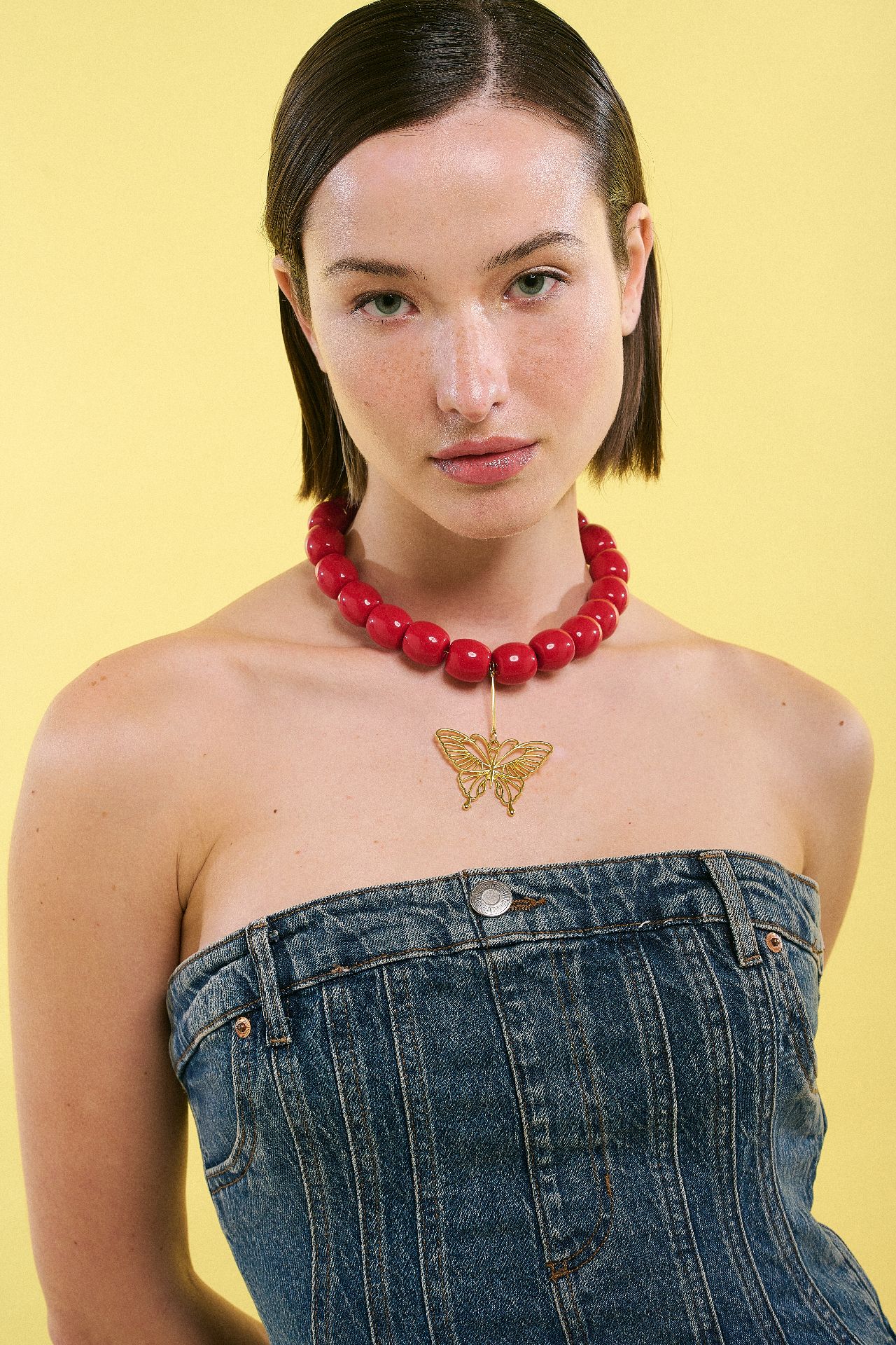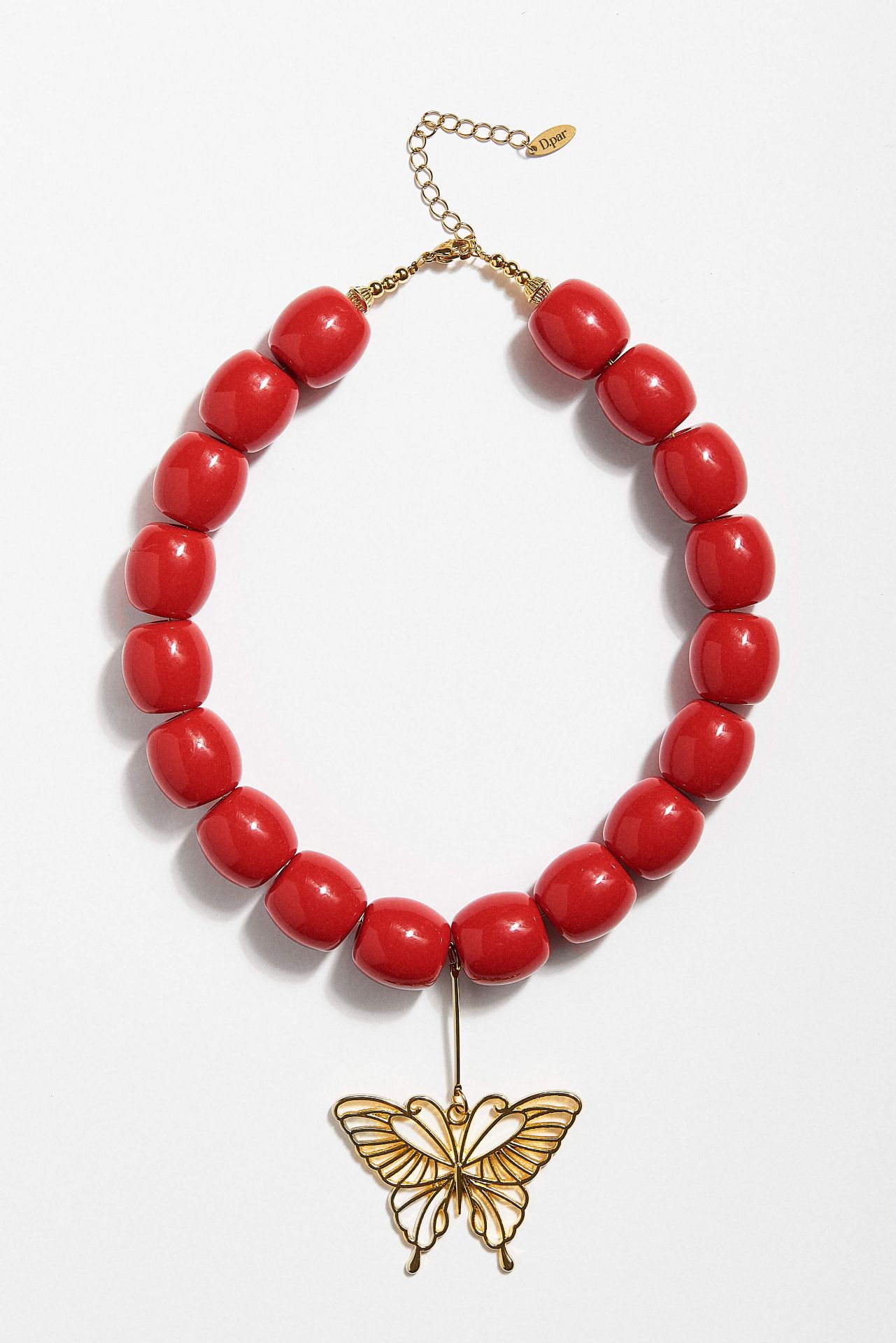 Κολιέ πεταλούδα επιχρυση 24Κ με ακρυλικές χάντρες