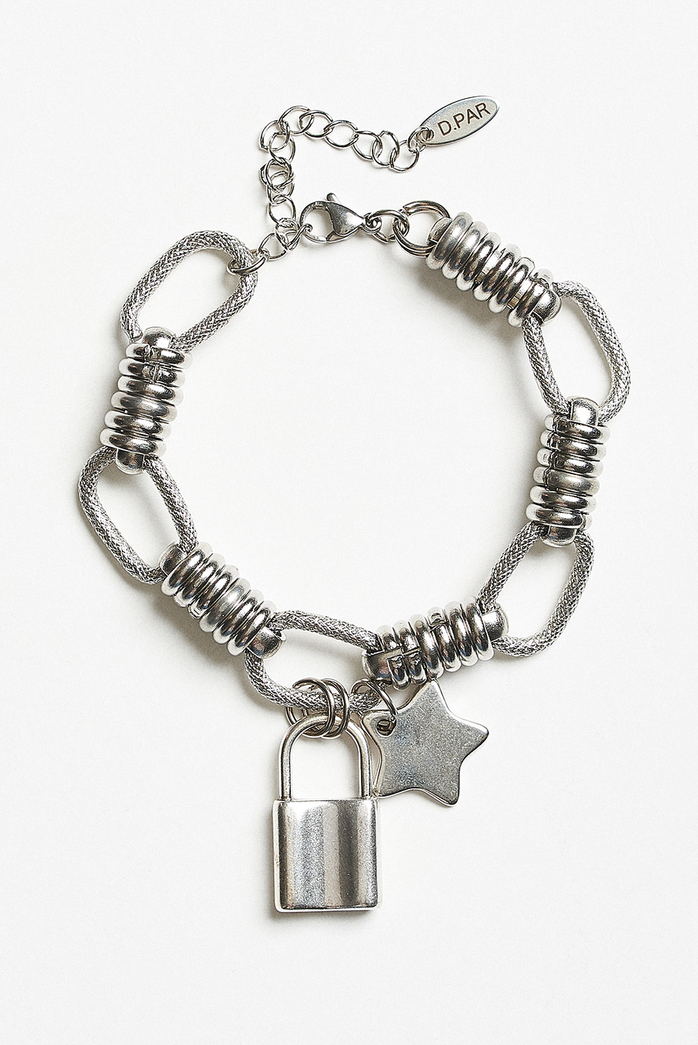 Βραχιόλι με ατσάλινη αλυσίδα και μεταλλικά επάργυρα στοιχεία