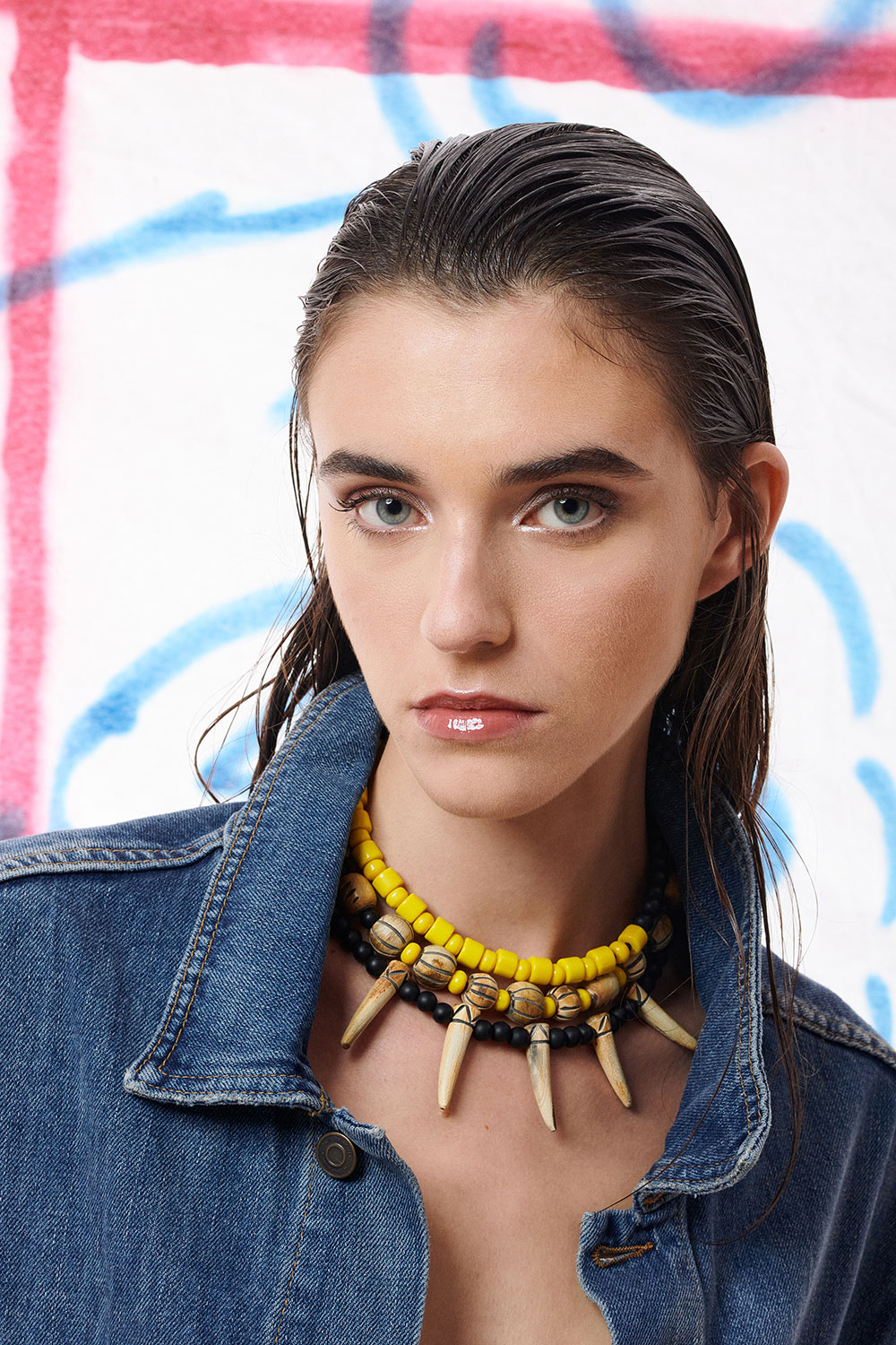 Κολιέ με ματ κ γυάλινες χάντρες .