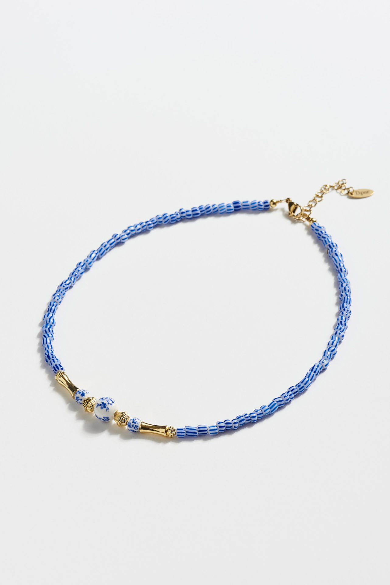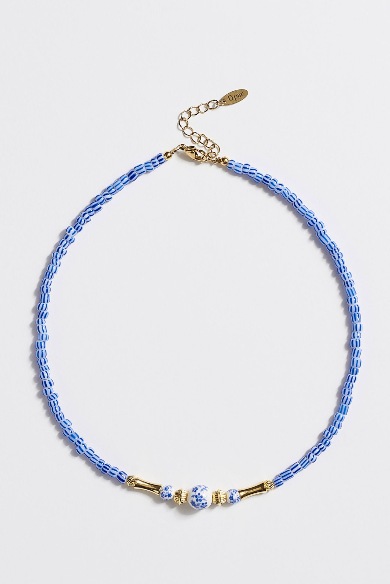 Κολιέ με γυάλινες και πορσελάνινες χάντρες, επιχρυσα στοιχεία 24Κ και ατσάλινο κούμπωμα