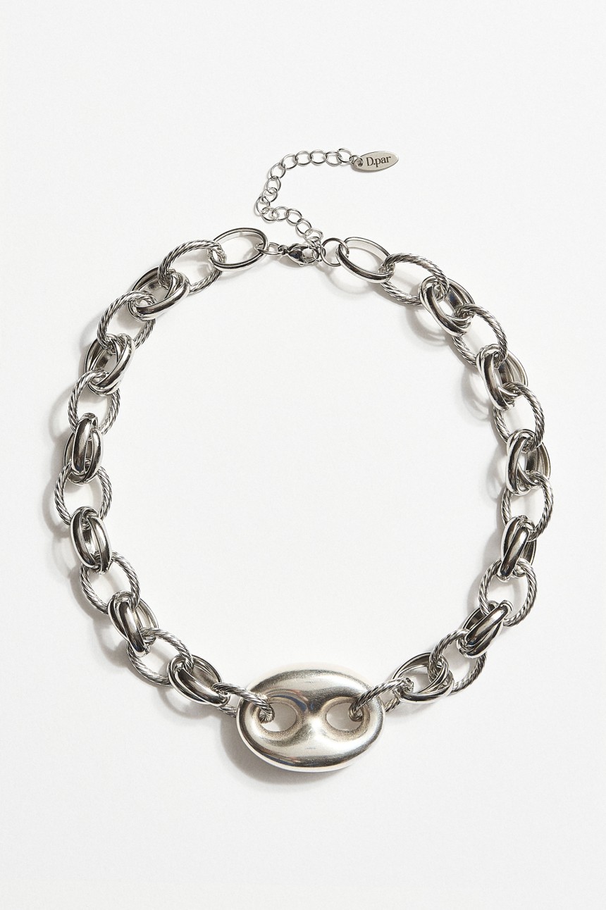 Κολιέ με ατσάλινη αλυσίδα και ακρυλικό στοιχείο επαργυρωμένο 999°,μήκος 40 εκατοστά