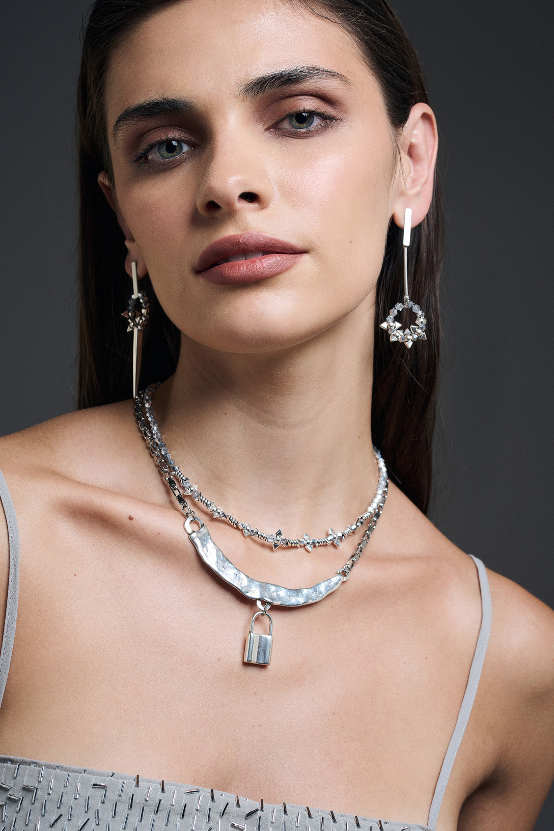 Kολιέ ατσάλινη αλυσίδα με μεταλλικά επάργυρα στοιχεία