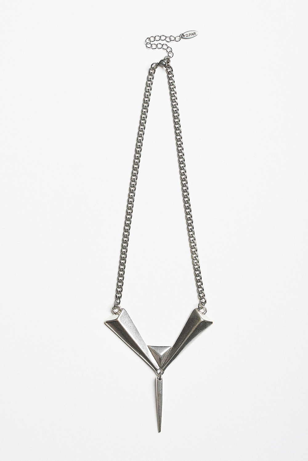 Kολιέ ατσάλινη αλυσίδα με μεταλλικά επάργυρα στοιχεία