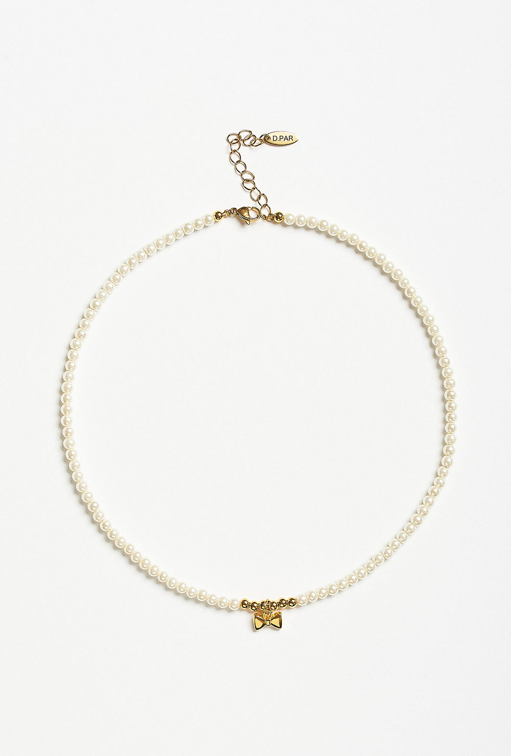 Κολιέ με λευκή πέρλα και μεταλλικά επίχρυσα στοιχεία 24Κ
