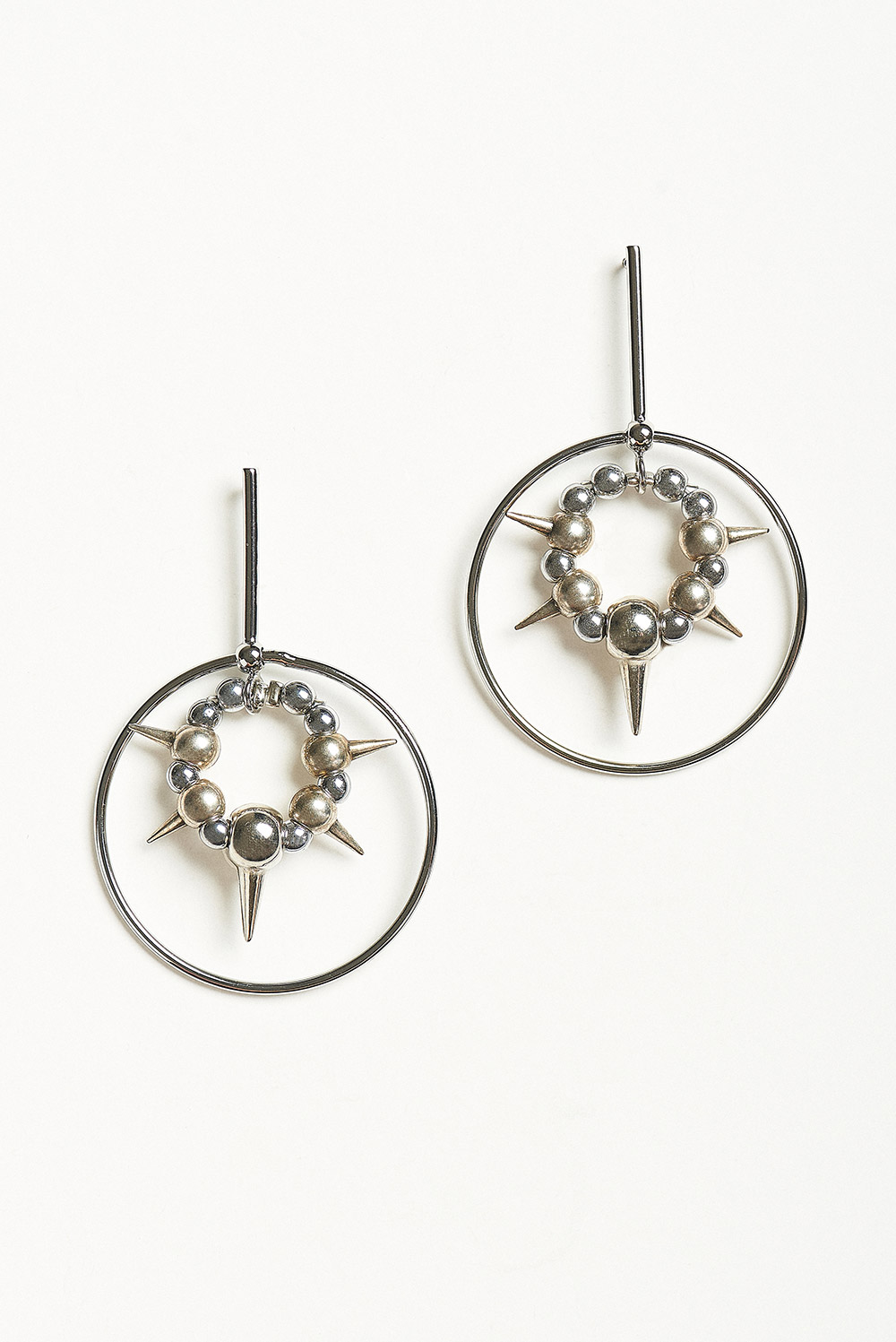Σκουλαρίκια με μεταλλικά και ακρυλικά επάργυρα στοιχεία και ατσάλινο υποαλλεργικό κούμπωμα
