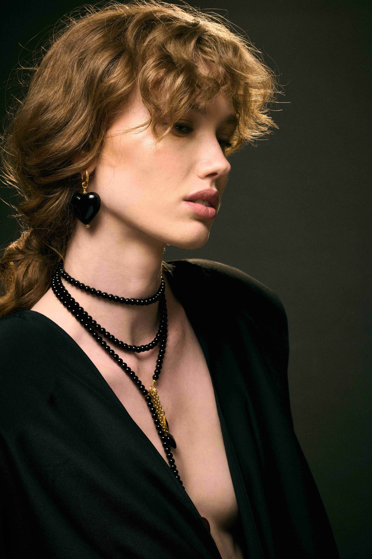 Σκουλαρίκι με μαύρες ακρυλικές καρδιές και ατσάλινο κούμπωμα κρίκος.