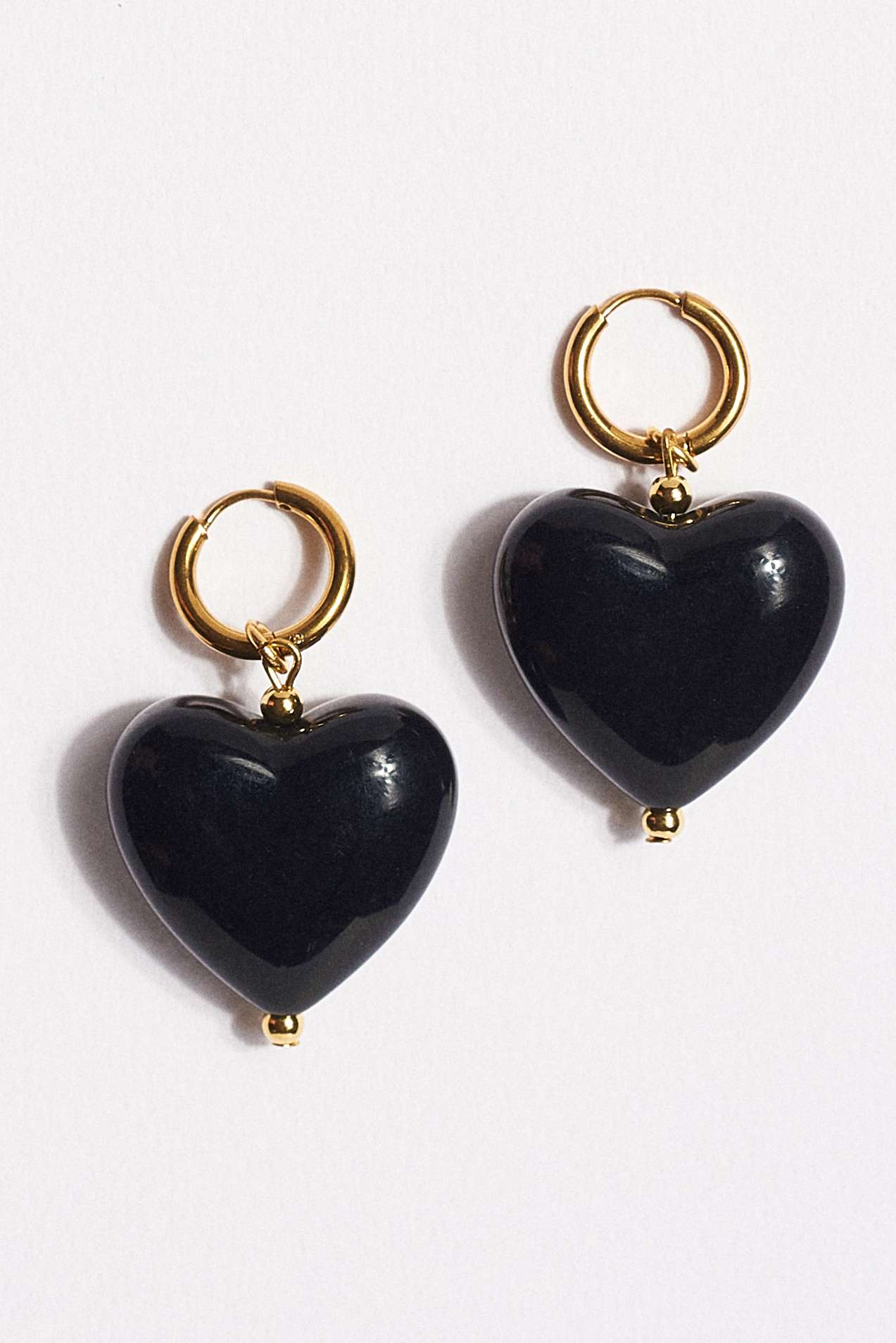 MON COEUR σκουλαρίκι με μαύρες ακρυλικές καρδιές και ατσάλινο κούμπωμα κρίκος.