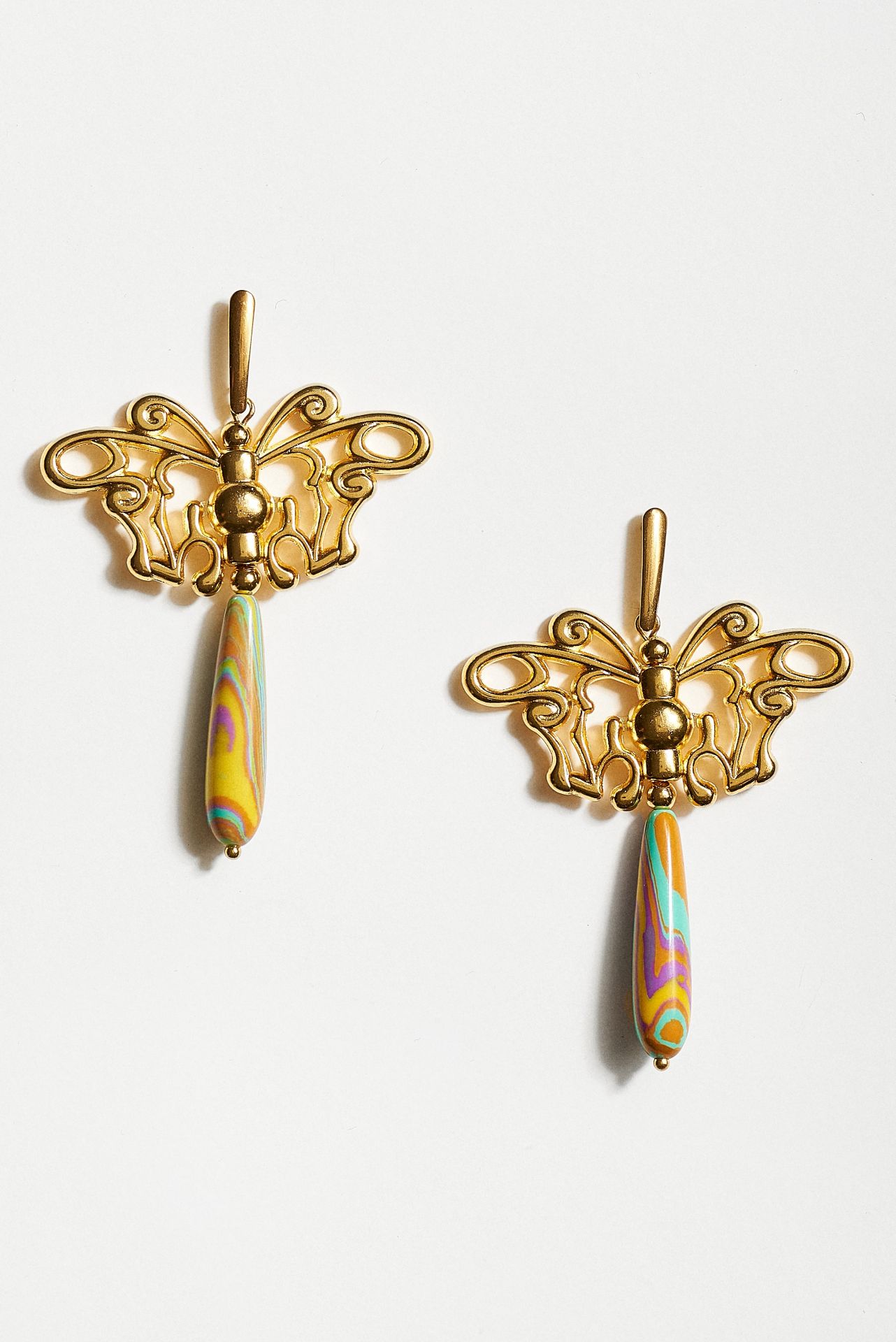 Σκουλαρίκια πεταλούδες με επίχρυσα στοιχεία 24Κ και δάκρυ ημιπ. πάστα