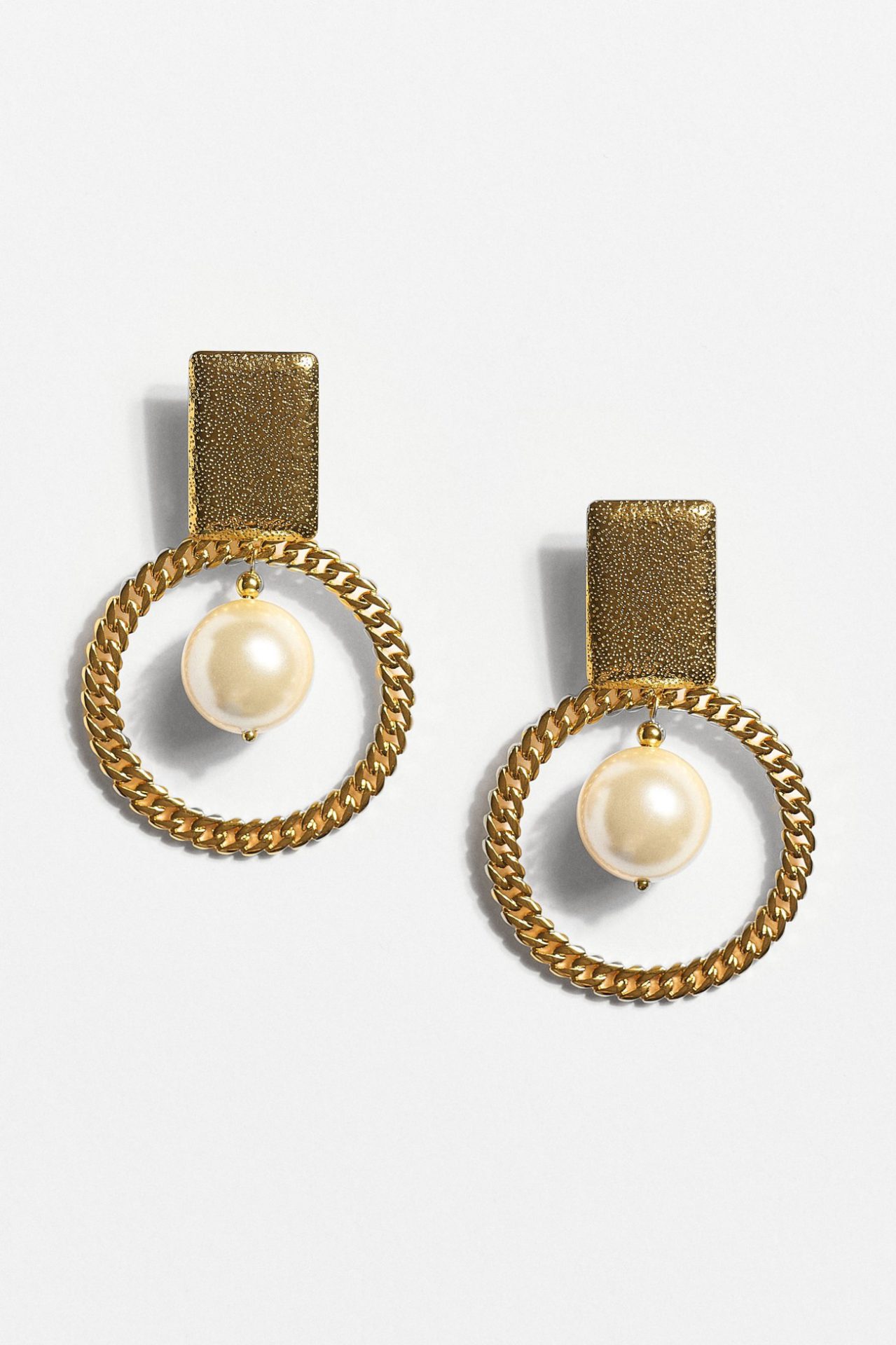 Σκουλαρίκια με επίχρυσα στοιχεία 24Κ, πέρλα και ατσάλινο κούμπωμα, μήκος 7 εκατοστά και υποαλλεργικό κούμπωμα