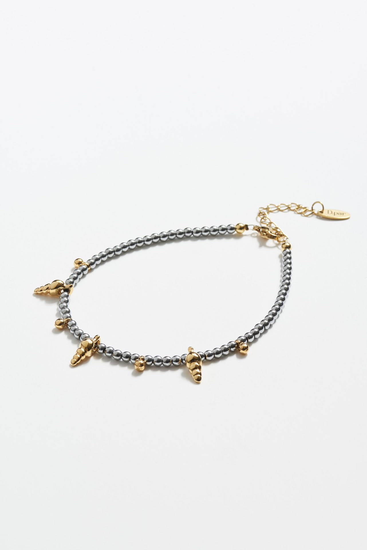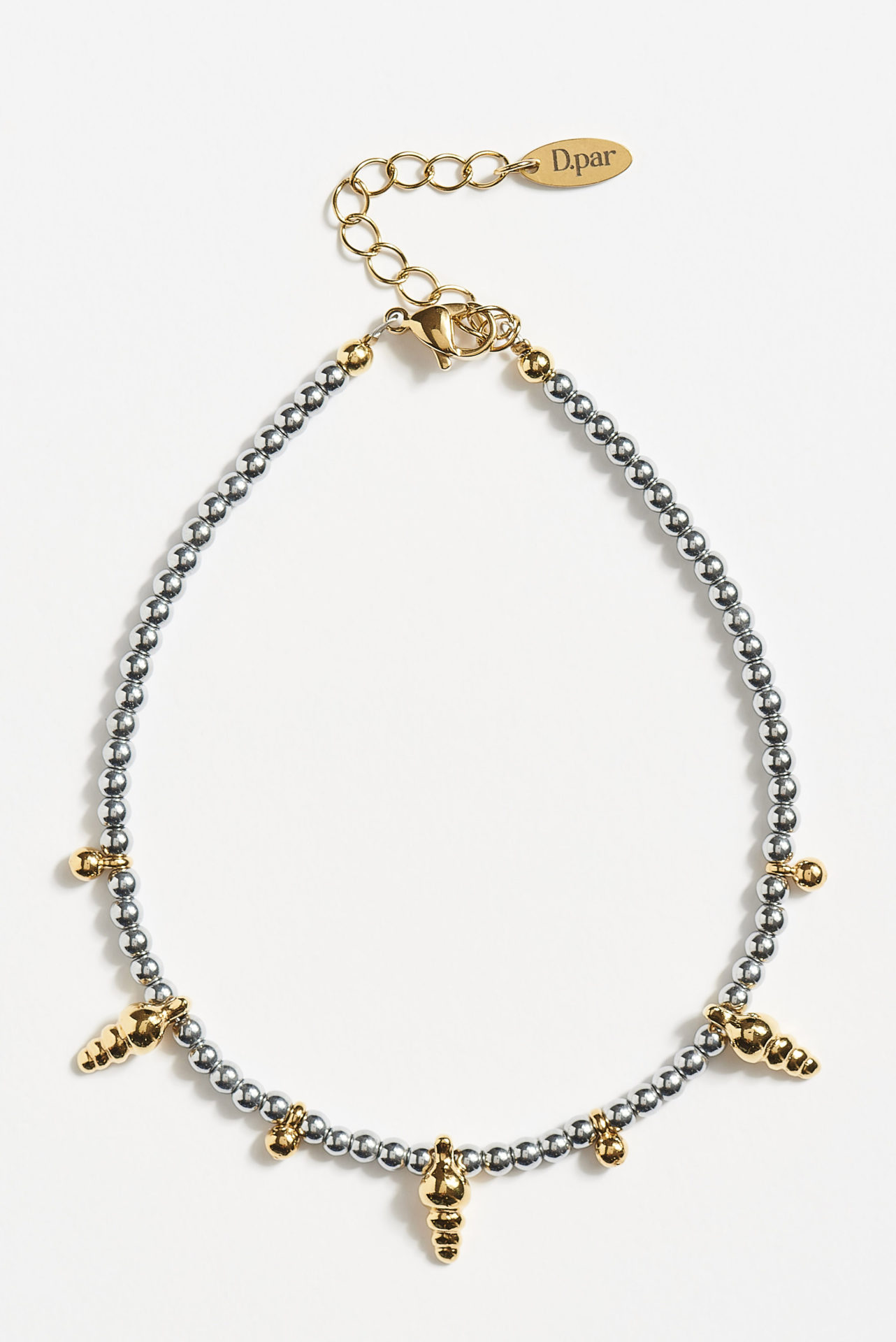 Bραχιόλι ποδιού με χάντρα αιματίτη και επίχρυσα στοιχεία 24Κ, ατσάλινο κούμπωμα