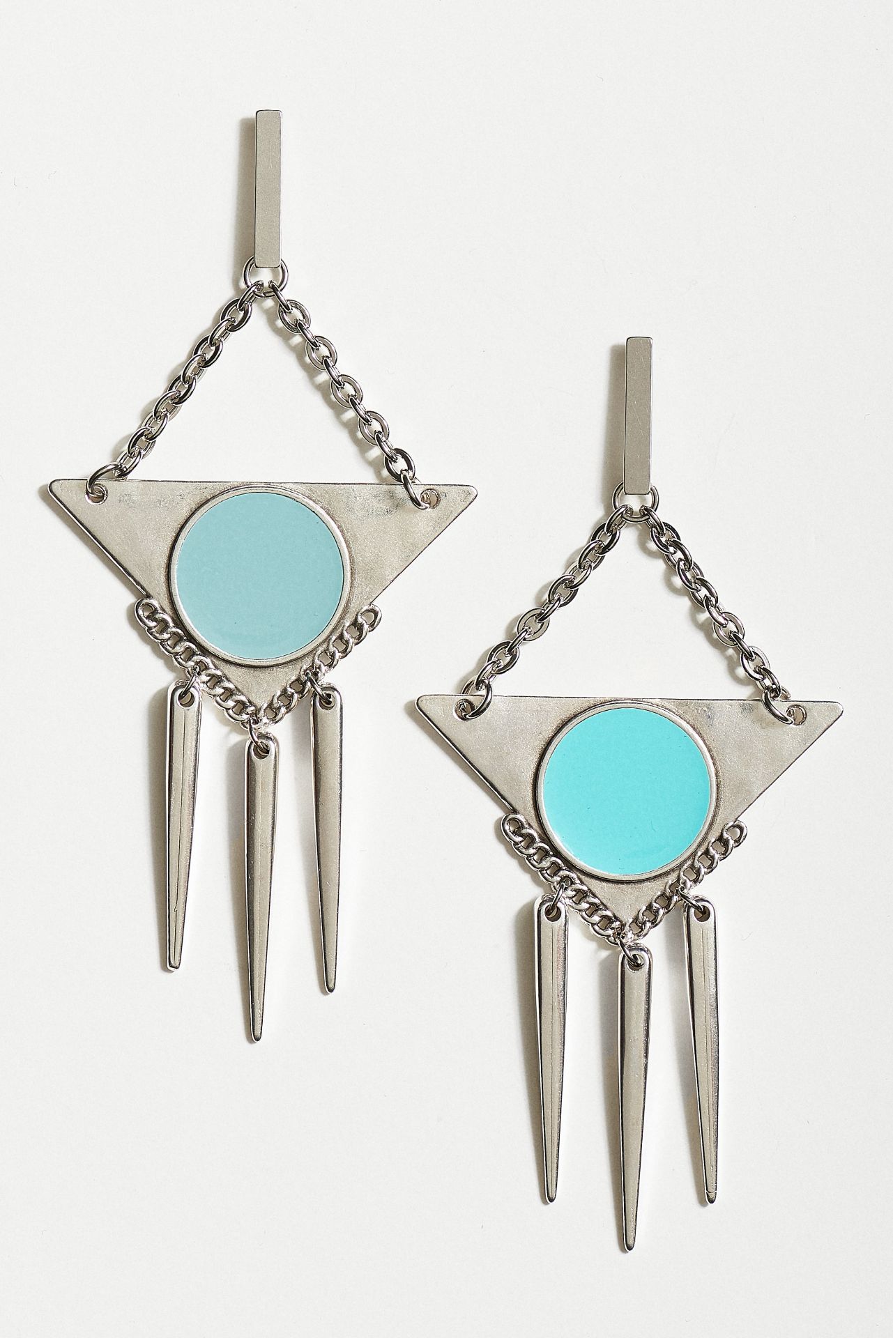Σκουλαρίκια με τυρκουάζ σμάλτο και επάργυρα στοιχεία, αλυσίδα και σκουλαρίκια ατσάλι