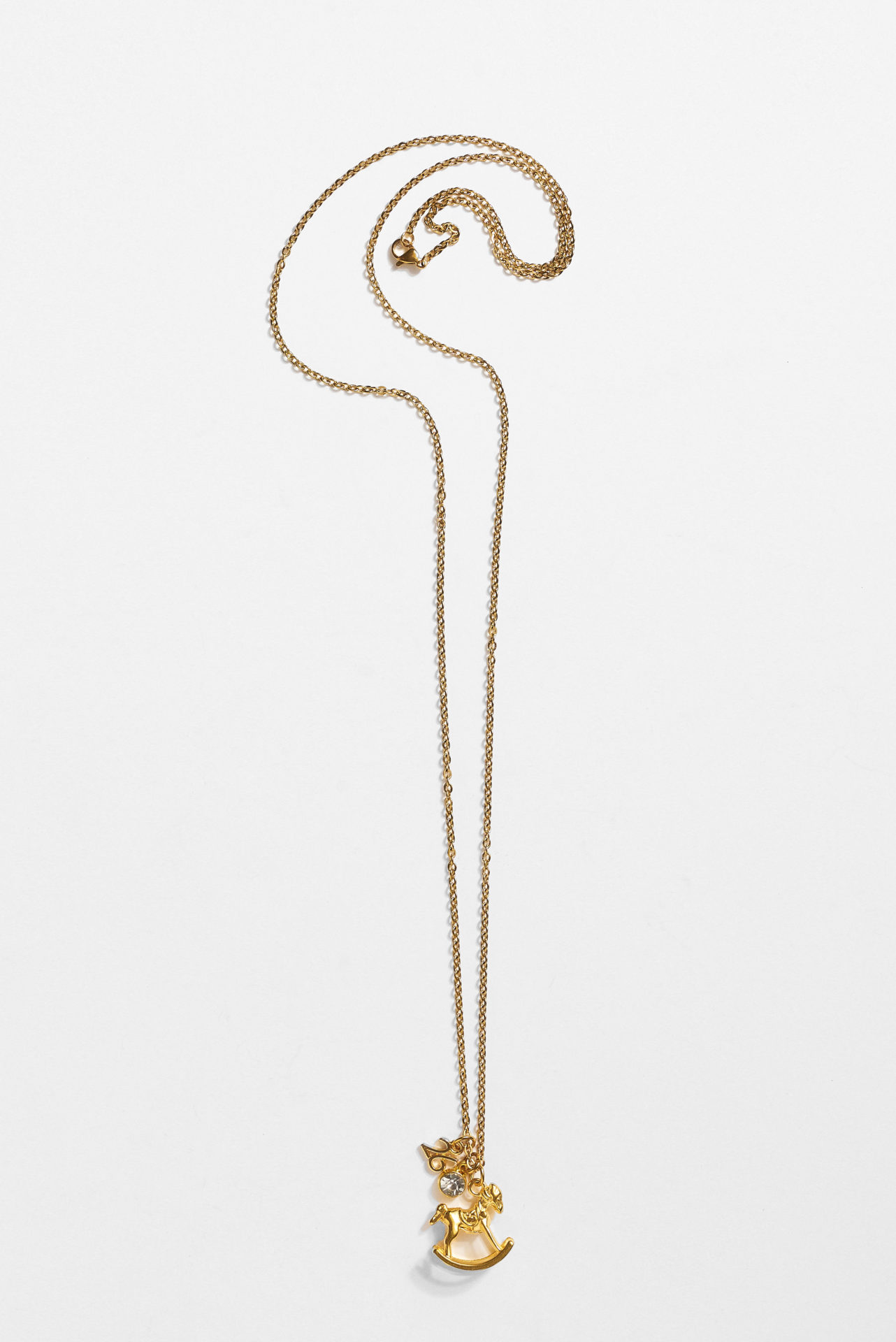 Κολιέ γούρι με ατσάλινη αλυσίδα και επίχρυσα στοιχεία με στράς,μήκος αλυσίδας 80 εκ. μοτίφ 2,5 εκ.
