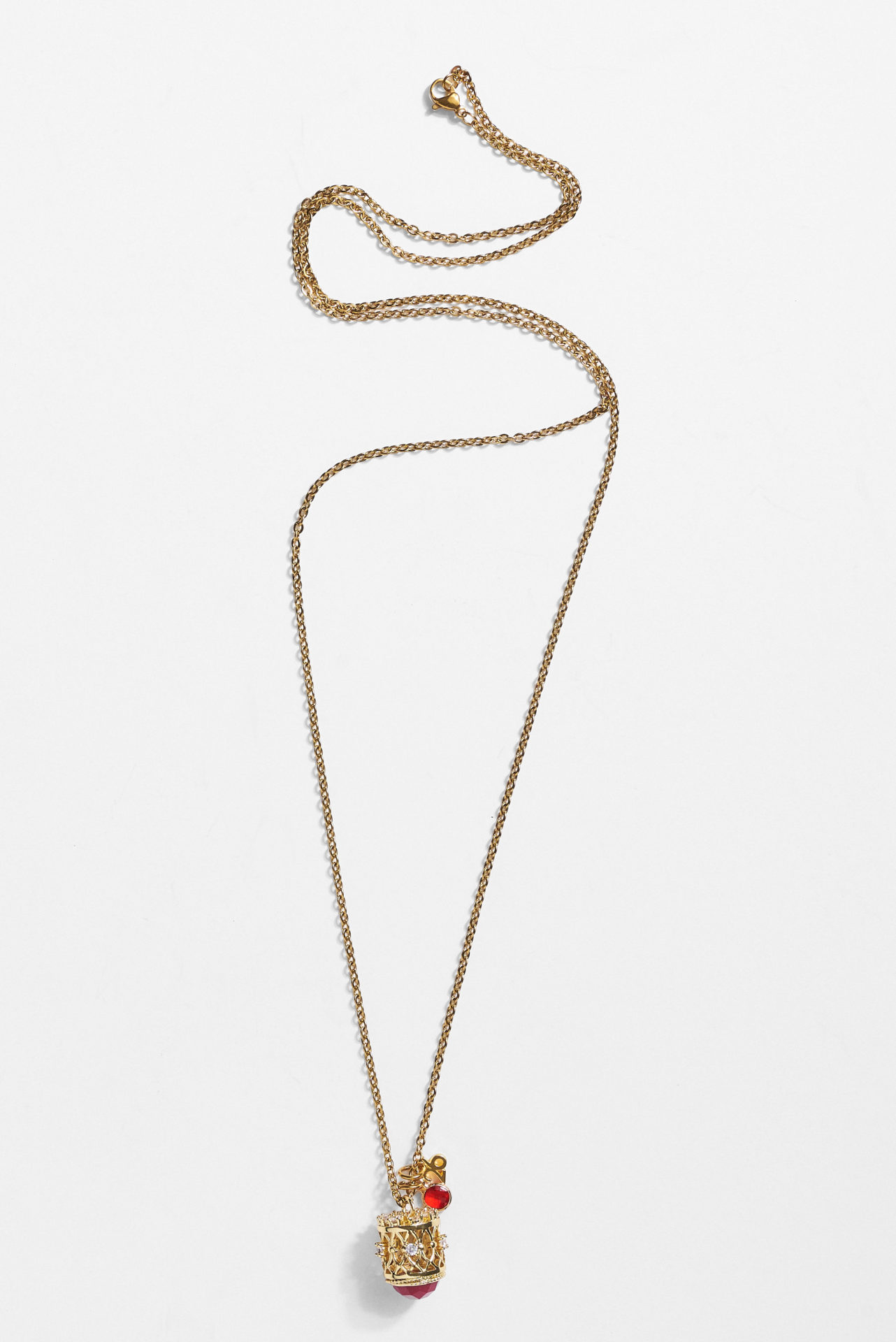 Κολιέ γούρι με ατσάλινη αλυσίδα και επίχρυσο στοιχείο με ζιργκόν και ημιπολύτιμους λίθους μήκος αλυσίδας 80 εκ. μοτίφ 2 εκ.