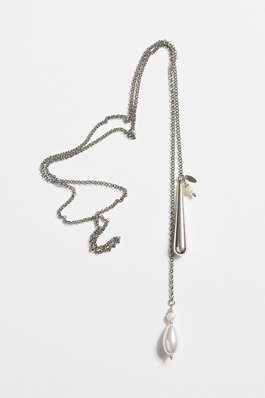 Κολιέ με ατσάλινη αλυσίδα, πέρλα και επαργυρωμένα στοιχεία 999°,μήκος 1,36 εκατοστά